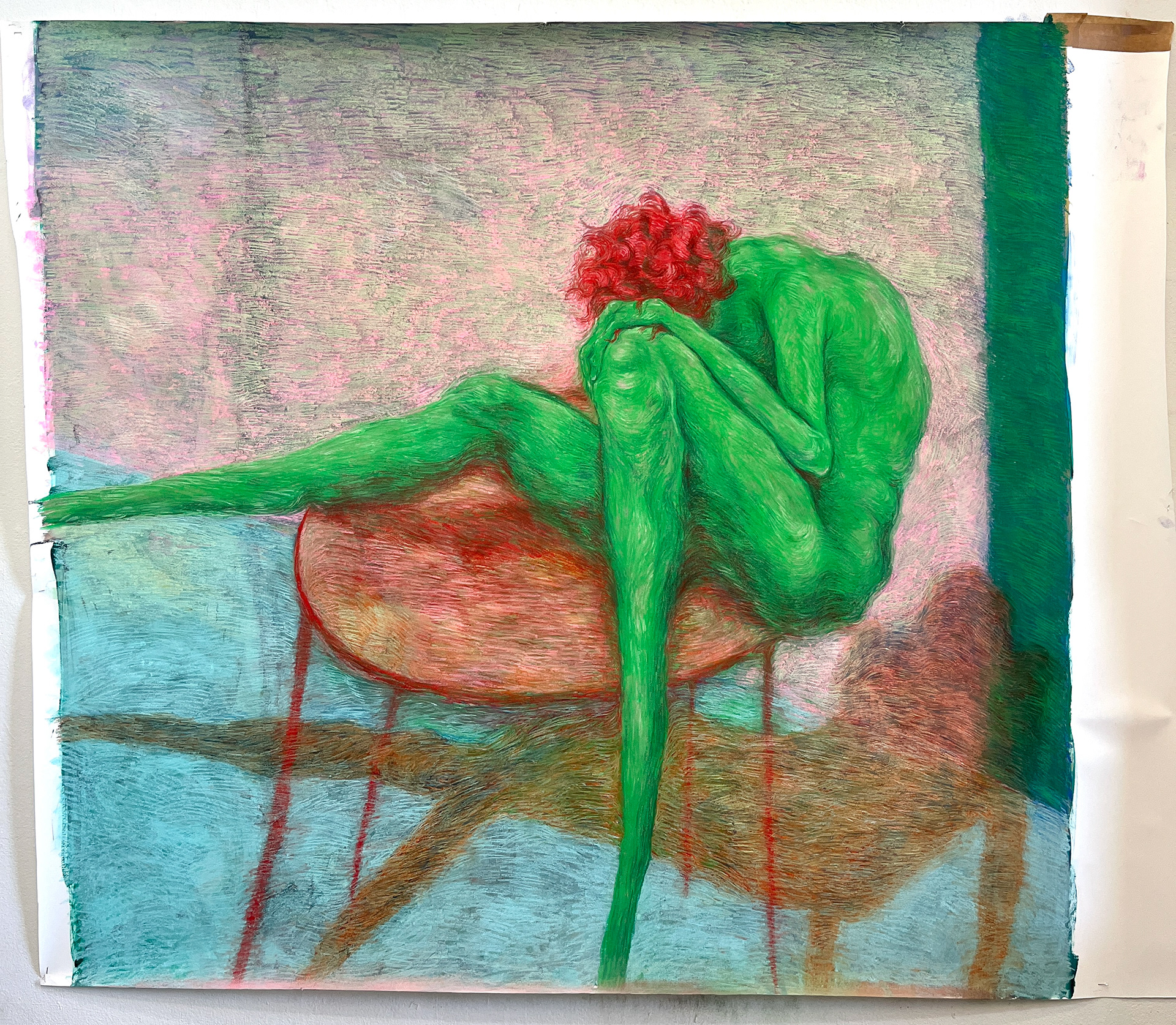 Green in the Morning, Acrylic and Pastel on Paper, 180x165 cm, 2024