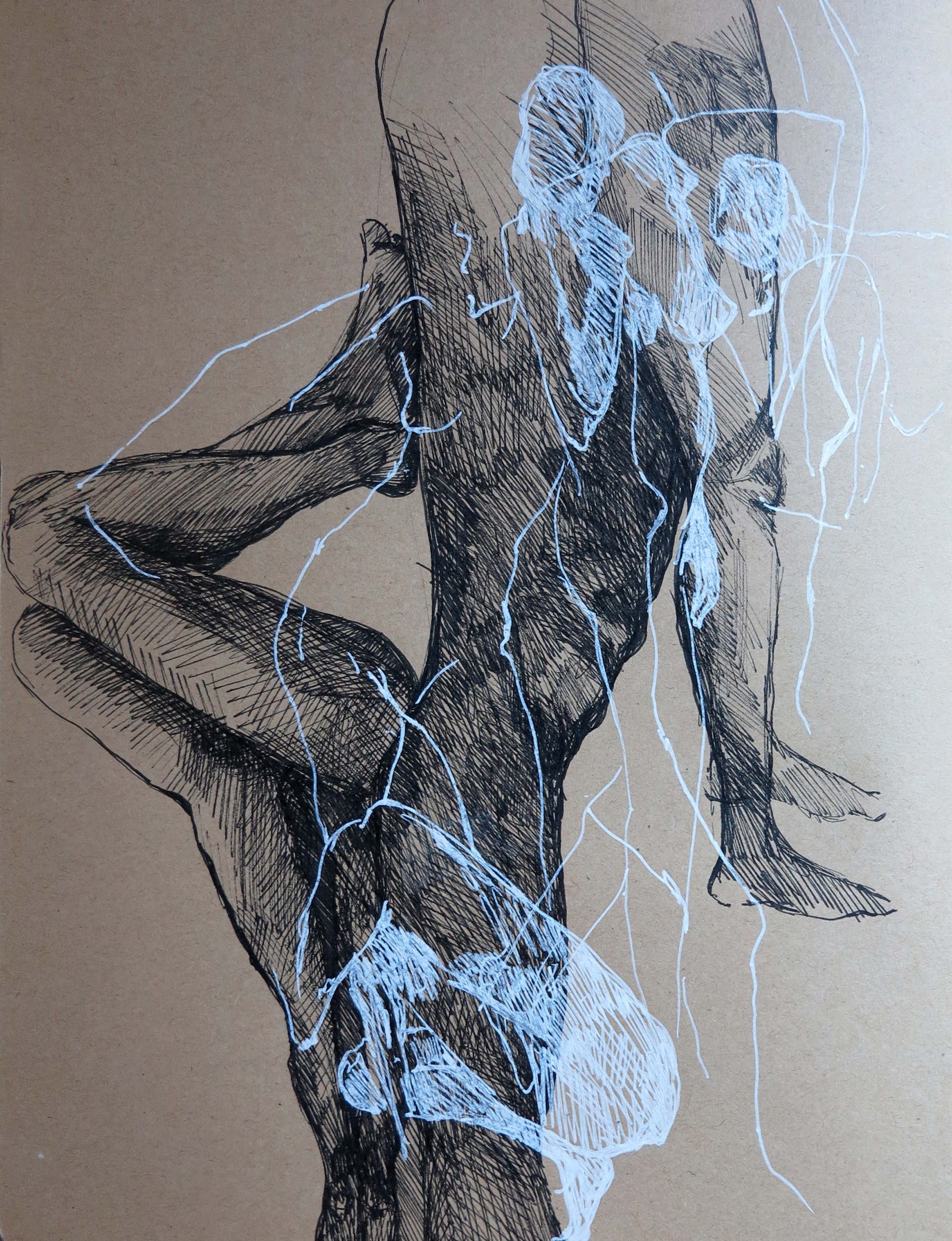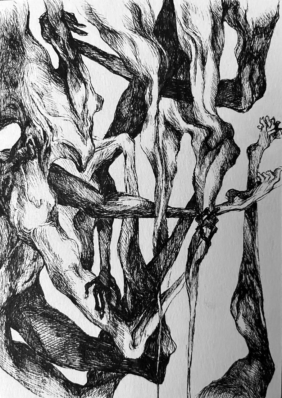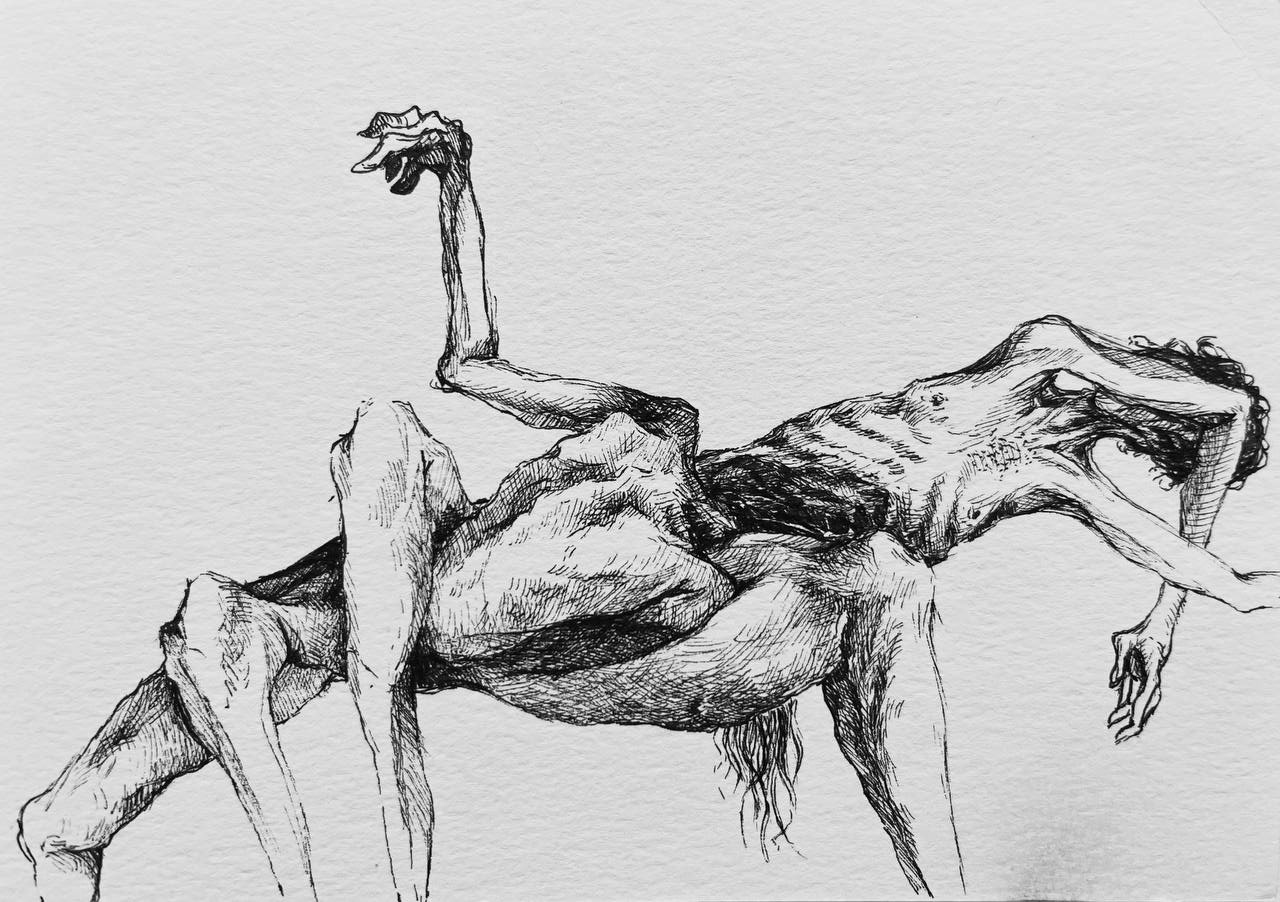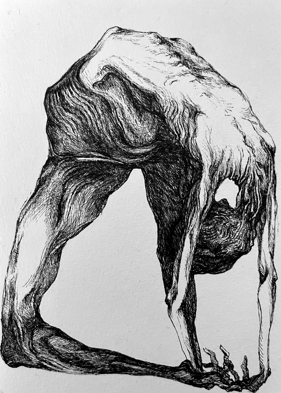 The heaviness of being, Ink pen on paper, 65x42 cm, 2024