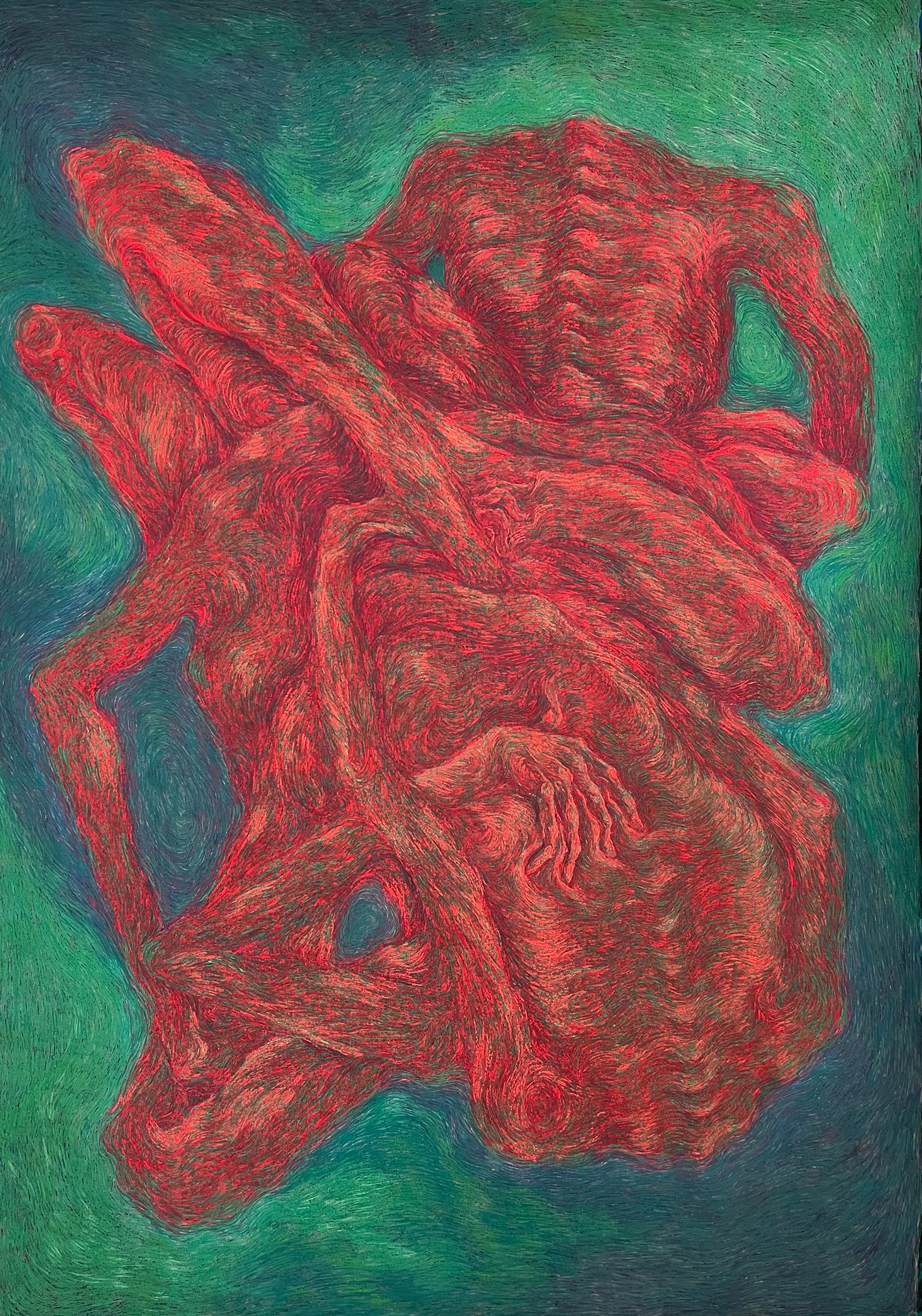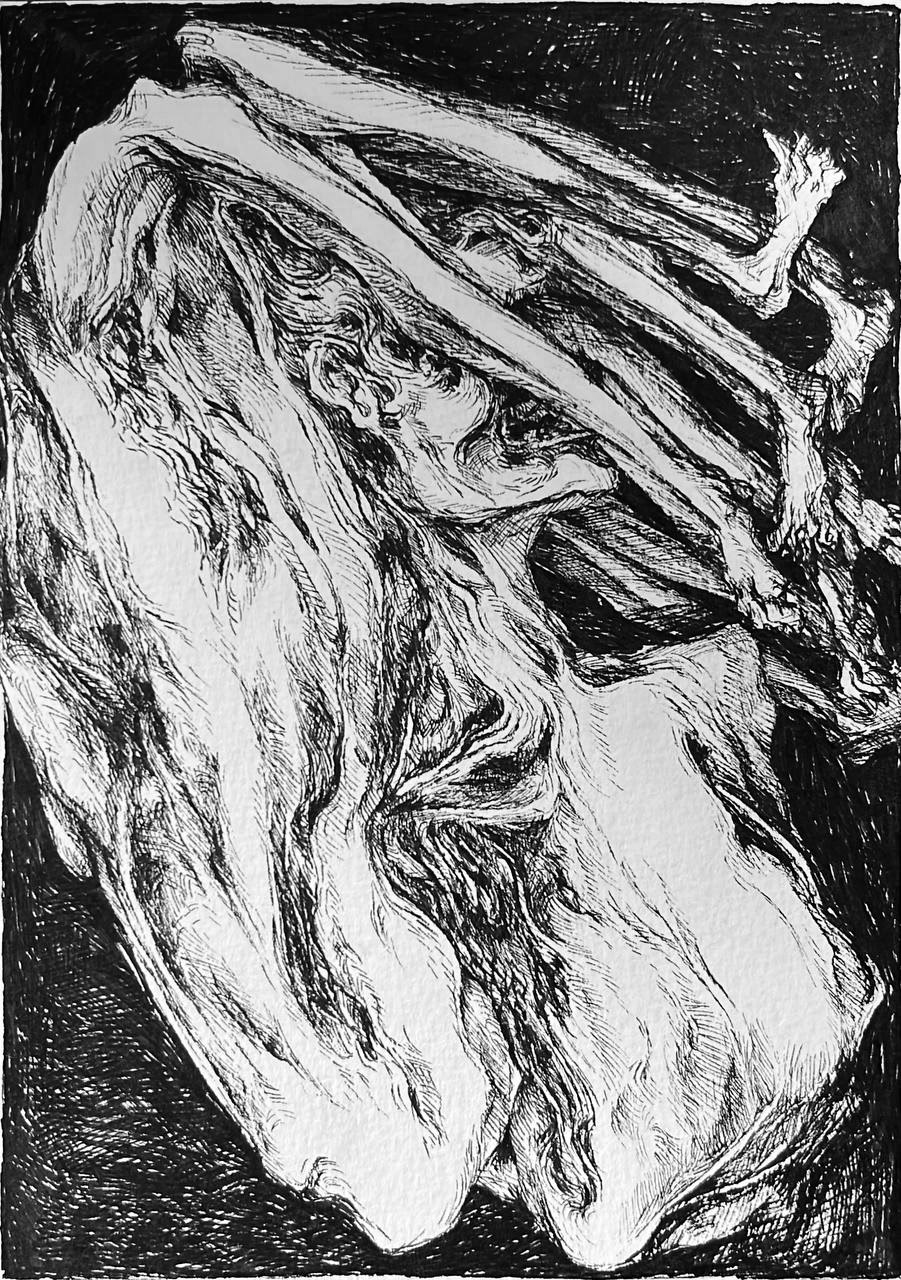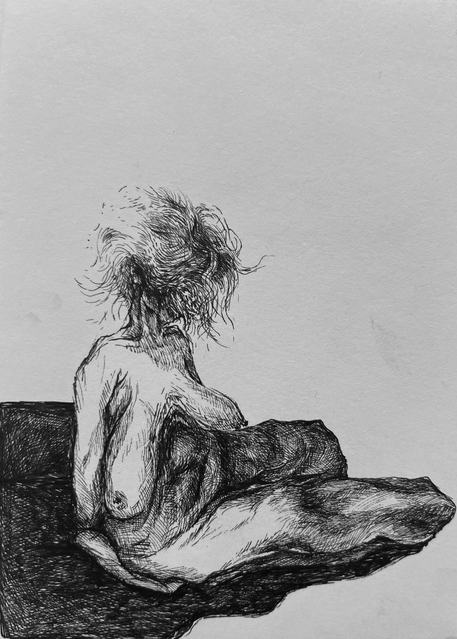 The heaviness of being, Ink pen on paper, 65x42 cm, 2024