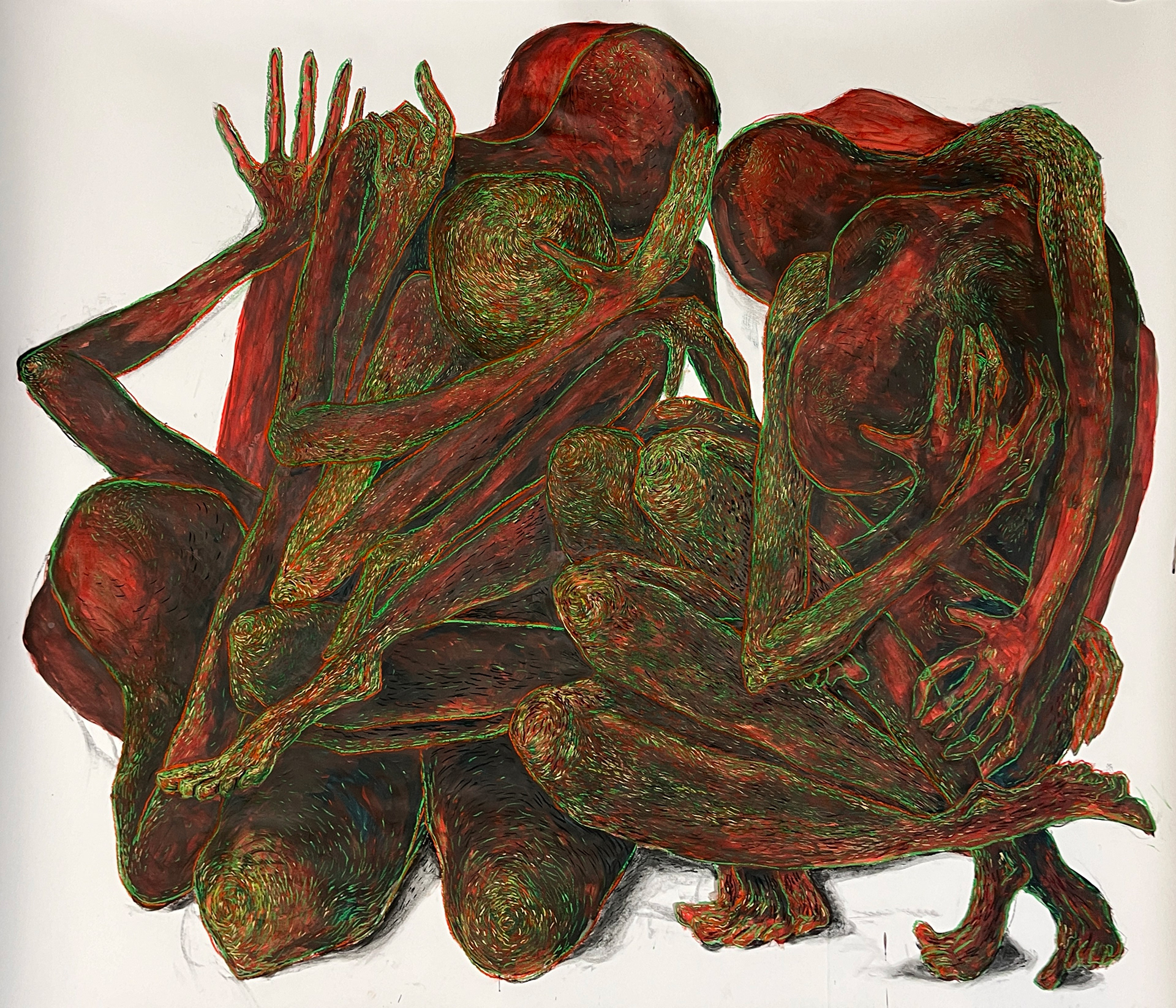 Drowning in them, Pastels on paper, 174 x 147 cm, 2025