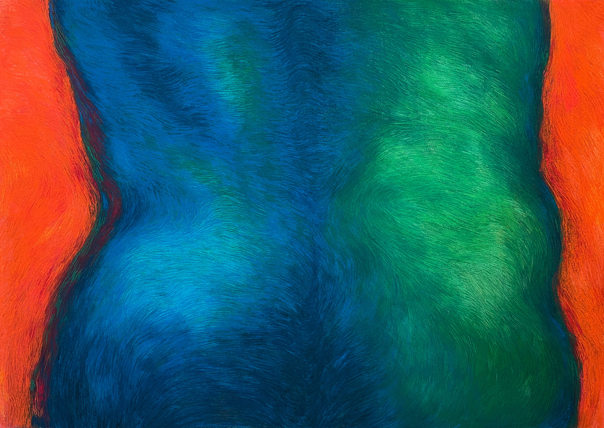 Blue Sky, Green Grass, Acrylic and Chalk Pastel on Paper, 120x80 cm, 2025
